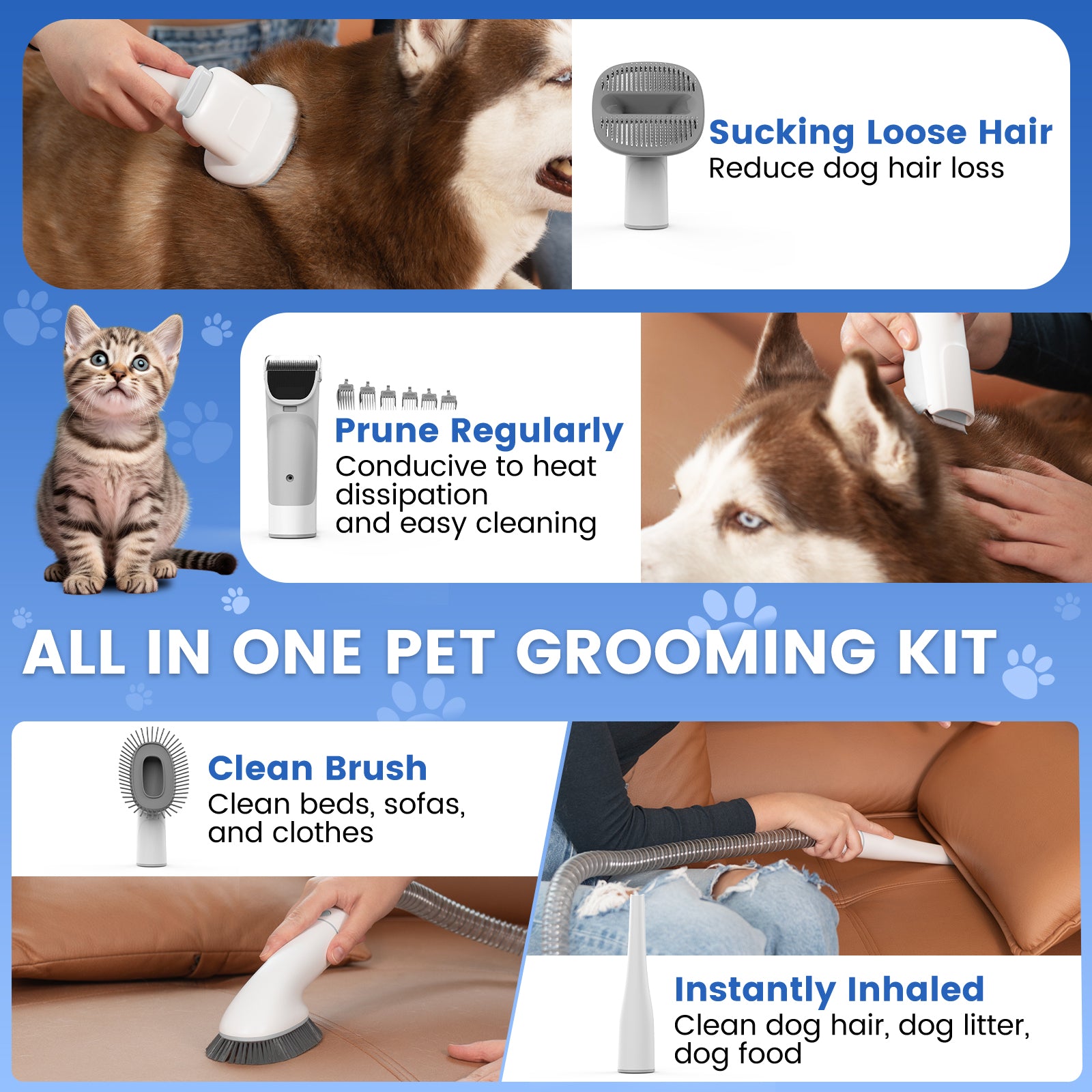 PG200 | Cordless Rechargable Pet Grooming Kit & Vacuum | Pet Vacuum Groomer